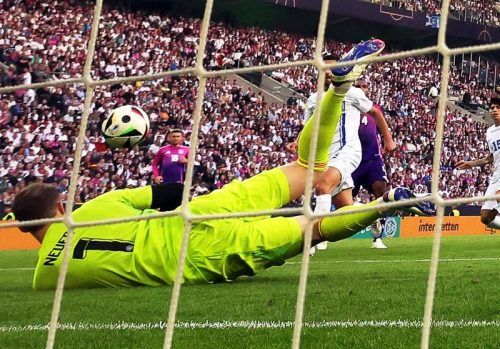 „Er verliert wichtige Aktionszeit“: Manuel Neuer gab gegen Griechenland eine unglückliche Figur ab. © dpa/Christian Charisius