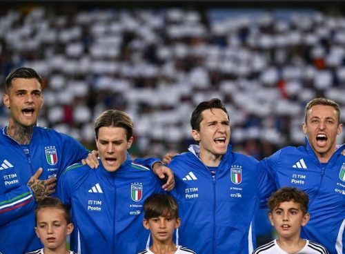 Zeit für Pathos: Italiens Spieler singen meist mit besonderer Inbrunst mit. © IMAGO