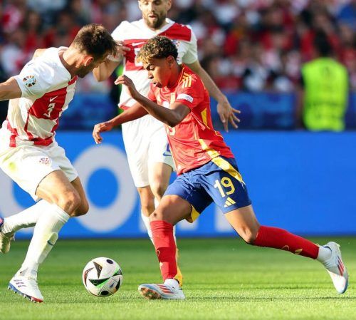 Der mit den Kroaten tanzte: Spaniens erst 16-jähriger Jungstar Lamine Yamal bestand seine Reifeprüfung. © dpa