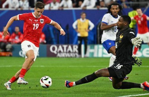 Eine riesige Chance vergab Österreichs Christoph Baumgartner, Frankreichs Mike Maignan war zur Stelle. © DPA
