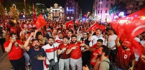 Türkyie bleibt im Rennen: Überall im Land – wie hier in Hamburg – feierten Tausende den Sprung ins Achtelfinale. © dpa