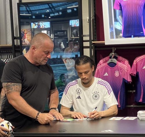 Immer alles fest im Blick: Jose Meneses (hier mit Sane). © Bonke