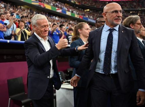 Daumen hoch: Auch Deschamps zeigte de la Fuente seine Anerkennung. 90 Minuten später war Frankreich raus. © IMAGO