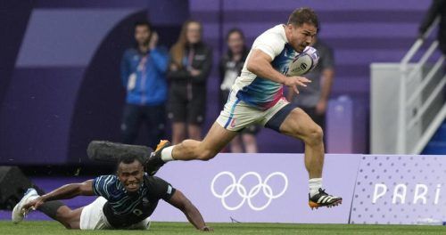 Gold-Junge: Frankreichs Rugbystar Antoine Dupont (r.) hat sein Team zur ersten Goldmedaille für den Olympia-Gastgeber geführt. Der Ausnahmespieler machte beim 28:7 (7:7) im Finale im Stade de France gegen Weltmeister Fidschi mit zwei Versuchen den Unterschied. © dpa