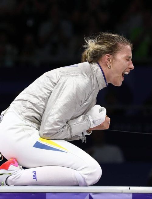 Olha Charlan sank nach dem letzten Treffer auf die Knie, dann ließ sie ihren Tränen freien Lauf. „Ich widme diese Medaille der ganzen Ukraine“, sagte die fünfmalige Fecht-Weltmeisterin nach ihrem Comeback-Sieg im kleinen Säbel-Finale, der ihrer Heimat das erste Edelm