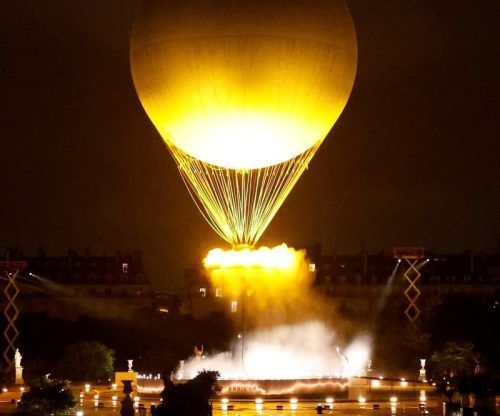 Tagsüber bleibt das olympische „Feuer“ am Boden, doch am Abend hebt es ab und erhellt 60 Meter über den Tuilerien Paris. Kurios: Die Flamme ist in Wirklichkeit ein „kraftvoller Lichtstrom“, der auf eine „Wasserwolke“ projiziert wird. 40 starke LED-Scheinwerfer sind im Einsatz, in einer Stunde verdam