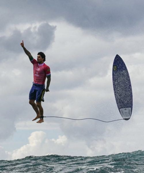 Über 15 000 Kilometer von Paris entfernt ist jetzt schon eines der ikonischsten Bilder der Spiele entstanden. Surfer Gabriel Medina (30) scheint über einer der Riesenwellen von Tahiti zu stehen, wo die Surf-Wettbewerbe ausgetragen werden. Nach einem fantastischen Ritt durch eine der knapp drei Meter