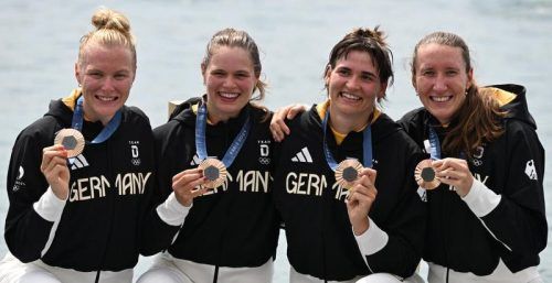 Bronze-Coup: Maren Wölz, Tabea Schendekehl, Leonie Menzel und Pia Greiten. © dpa