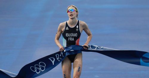 Heimsieg: Die französische Triathletin Cassandre Beaugrand gewann Gold vor Julie Derron (Schweiz) und Beth Potter aus Großbritannien. © dpa