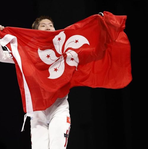 Eigene Fahne: Hongkongs Long Cheung jubelt. © IMAGO