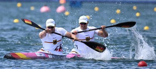 Im Kajak-Zweier: Max Rendschmidt (li.) und Tom Liebscher-Lucz. © Kahnert/dpa