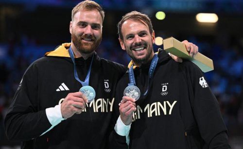 Renars Uscins und die anderen Silber-Helden schunkelten Arm in Arm und sangen voller Inbrunst bei „Oh, wie ist das schön“ mit. Tief in der Nacht ließen es Deutschlands Handballer bei ihrer abschließenden Party in Pa