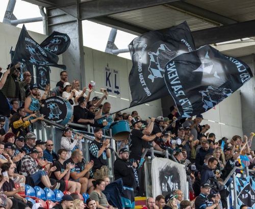 Begeisterung in Blau-Schwarz: Die Fangemeinde der Ravens im Sportpark. © IMAGO