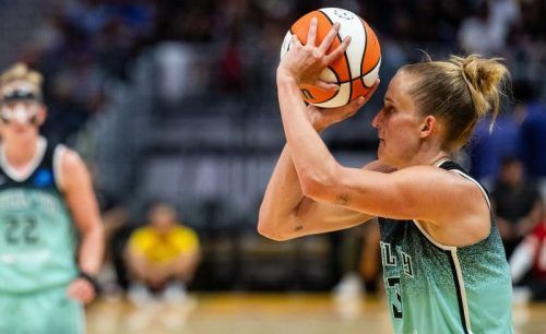 Treffsicher wie nie zuvor: Leonie Fiebich ist der Trumpf des Teams New York Liberty. © dpa/Maximilian Haupt
