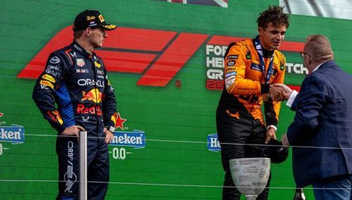 Ungewohnte Rolle: Verstappen staunt, Norris siegt. © IMAGO