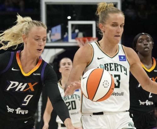 Siegesserie geht weiter: New York Liberty und Leonie Fiebich (r.) gewannen auch gegen Phoenix in der WNBA (84:70).. © dpa