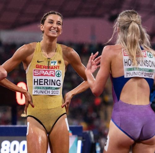 Am Ende Siebte, aber glücklich: Christina Hering bei ihrer Heim-EM 2022 in München. © dpa/Marius Becker