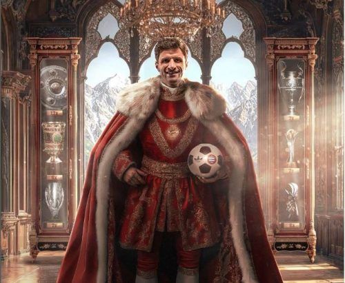 Königlicher Bayer: Der Verein zeigte diese Kollage des Mannes, der am Sonntag zum 710. Mal im roten Trikot auflief. © fcb