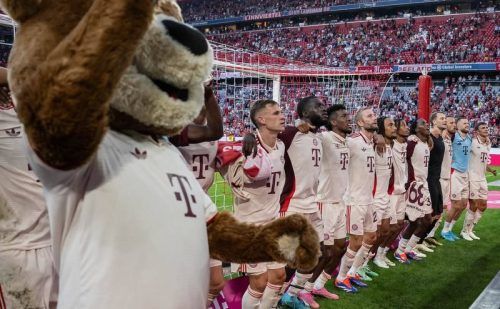 Gemeinsam stark: Die Bayern gehen ohne Punktverlust in die kurze Pause – und ließen sich vor der Kurve für den makellosen Saisonstart feiern. © IMAGO