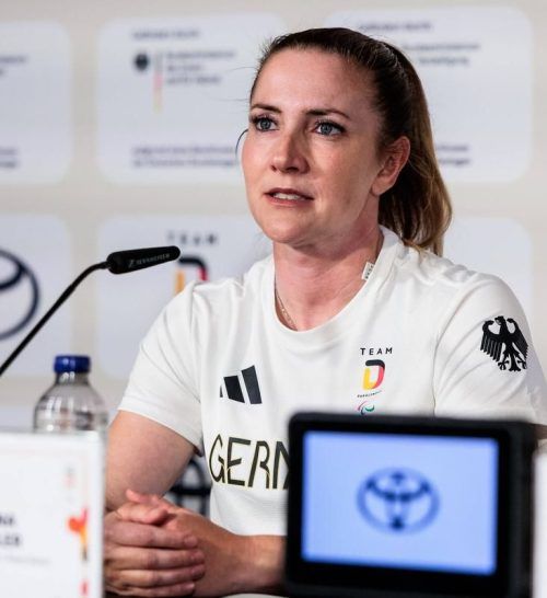 Fahnenträgerin in Paris: Edina Müller. © IMAGO
