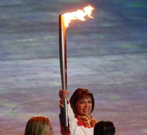 2014 in Sotschi mit dem olympischen Feuer. © IMAGO