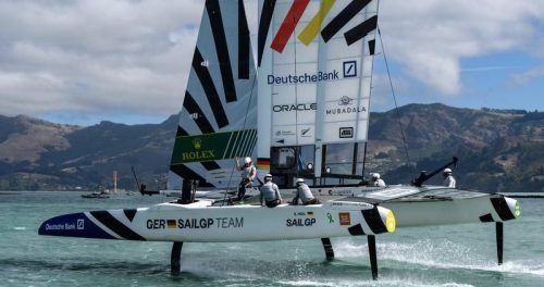 Das Germany SailGP Team mit Fahrer Erik Heil in Aktion – hier bei einer Regatta in Neuseeland. © Ricardo Pinto For Sailgp
