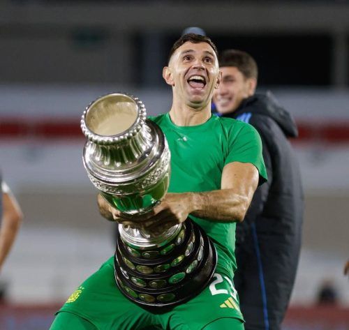 Er kann es nicht lassen: Der argentinische Weltmeister-Torhüter Emiliano Martinez (Foto: imago) ist unter anderen wegen einer weiteren Jubel-Provokation von der FIFA für zwei Spiele gesperrt worden. Der 32-Jährige von Bayerns nächsten Champions-League-Gegner Aston Villa verstieß Anfang September geg