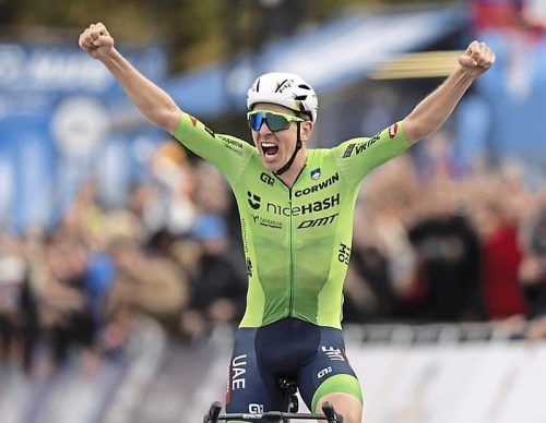 Nach dem Giro und der Tour schnappte sich Pogacar auch den Weltmeister-Titel. © Buergy/DPA