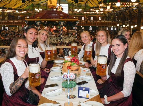 Für die anhaltende Siegesserie belohnen sich die Damen des FC Bayern auf dem Oktoberfest. Im Paulaner Festzelt blickt die Mannschaft auf ein erfolgreiches Spiel zurück. Mit dem 4:0-Erfolg bei Werder Bremen sitzen die Damen weiterhin sicher an der Tabellenspitze. Vorerst feiern die Damen den Erfolg n