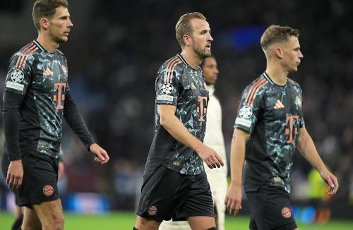 Geknickt: Leon Goretzka, Harry Kane und Joshua Kimmich nach der Villa-Niederlage. © IMAGO