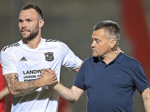 Große Wertschätzung füreinander: Haching-Boss Manni Schwabl (r.) und Neu-Löwe Patrick Hobsch, der bis Sommer für die SpVgg auflief. © Leifer/Imago