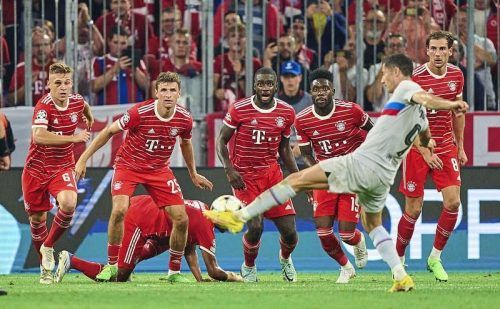 Alle auf Lewandowski: Tore ihres Ex-Kollegen und damit eine mögliche Pleite sollten die Bayern vermeiden. © IMAGO