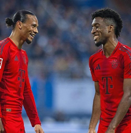 Leory Sané (links) und Kingsley Coman haben in München wieder gut lachen. © Mueller/Imago