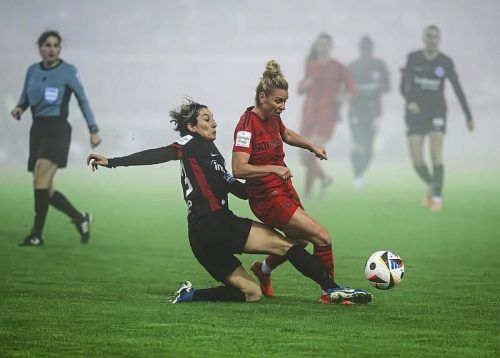 Die Frauen des FC Bayern München haben am Montagabend im Campus-Stadion einen Sieg im Spitzenspiel gegen Eintracht Frankfurt verpasst, die Tabellenführung durch das 1:1-Unentschieden aber verteidigt. Mit der erst 17-jährigen Alara Sehitler in der Startelf und Debütantin Ena Mahmutovic im Tor erwisch