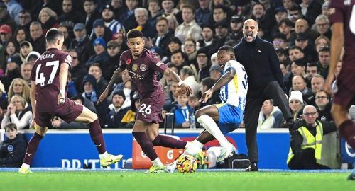 Alles Schreien half nichts – Pep Guardiola (re.) unterlag mit Manchester auch Brighton & Hove Albion. © IMAGO/Finlayson