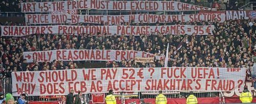 Der Zoff um die Ticketpreise für das Champions-League-Spiel des FC Bayern gegen Schachtar Donezk in Gelsenkirchen geht in die nächste Runde. Beim 1:0 in St. Pauli rollten Bayern-Anhänger Plakate aus und fragten: „Warum sollen wir 52 Euro für Stehplatzkarten zahlen? Warum akzeptiert der FC Bayern den