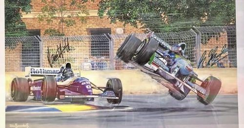 Die Szene, die in die Formel-1-Geschichte einging: Michael Schumacher (re.) kollidiert in Adelaide mit Damon Hill – am Ende scheiden beide aus.