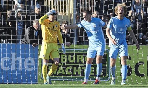 Nervenflattern bei 1860: Torhüter René Vollath, Max Reinthaler und Kapitän Jesper Verlaat. © Sampics / Stefan Matzke