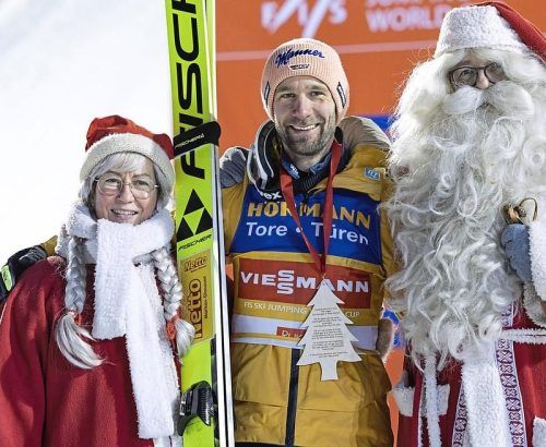 Kuusamo – Pius Paschke legte den linken Arm um den Weihnachtsmann, den rechten um die Weihnachtsfrau und blickte stolz auf sein Gelbes Trikot. „Wahnsinn, wie es derze