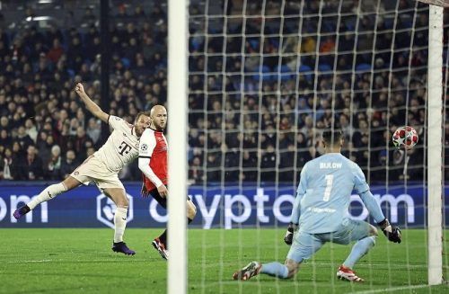 Kein Glück: Bayerns Superstürmer Harry Kane (l.) vergab beim 0:3 gegen Feyenoord Rotterdam beste Torchancen. © Imago