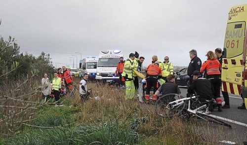 Horrorcrash: Nachdem ein Autofahrer das deutsche Bahnradteam erfasst hat, kümmern sich spanische Helfer und Sanitäter um die verletzten Sportler. © Cronica Balear