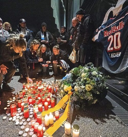 Vor dem Münchner SAP Garden: Fans trauern um den ehemaligen EHC-Spieler. © Red Bull/City-Press