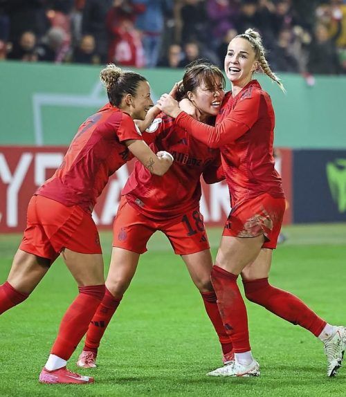 Auch Neuzugang Momoko Tanikawa (mitte) traf, zum 3:1. Zuvor hatte sie bereits einen Treffer sehenswert aufgelegt. © IMAGO/Eibner-PresseFoto/Jenni Maul