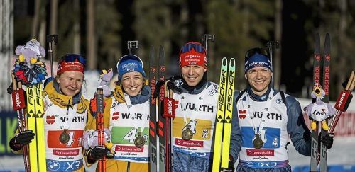 Nicht zu schlagen: Frankreich mit Simon, Jeanmonnot, Perrot und Jacquelin. © Ehrenzeller/EPA