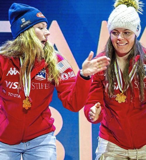 Goldenes Duo: Shiffrin (l.) und Johnson. © Büttner/dpa