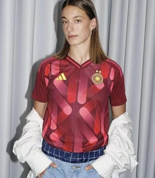Als Furja Roja zum EM-Titel in diesem Sommer in der Schweiz? Der Deutsche Fußball Bund hat am Montag das neue Auswärtstrikot seiner Frauen präsentiert – und es erinnert in seinen Rot- und Rosatönen stark an das Outfit der spanischen Konkurrenz. Beim Aussehen haben sich die Designer „vom Realismus un
