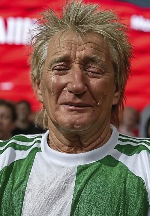 „Sailing“ – das war der Superhit von Rod Stewart 1975. 50 Jahre später geht der Rockstar nicht segeln, sondern mit seiner Lieblingsmannschaft Celtic Glasgow gegen den FC Bayern (hoffentlich) baden. Wir haben „Sailing“ für den weinenden Rod schon mal in „Crying“ umgedichtet. „I am crying, I am crying