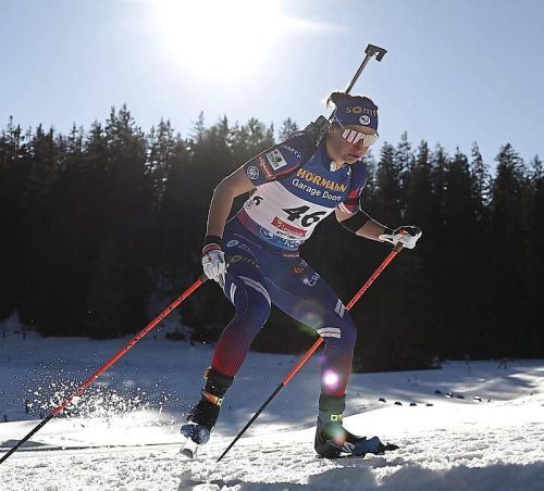 Julia Tannheimer hatte am Schießstand große Probleme und schaffte es mit vier Fehlern am Ende nur auf einen mäßigen Rang 33. © Schutt/dpa