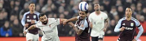 Packendes Duell: Mo Salah (Liverpool) und Ian Maatsen (Aston Villa). Am Ende gab es ein leistungsgerechtes 2:2. © IMAGO