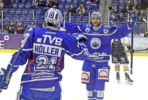 Der Playoff-Qualifikation schon nahe: Alexander Höller und Christoph Körner vom SC Riessersee. © Oliver Rabuser